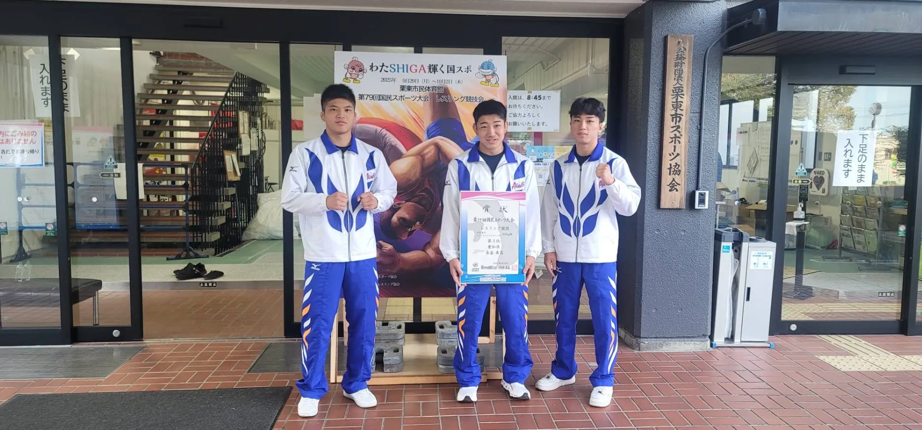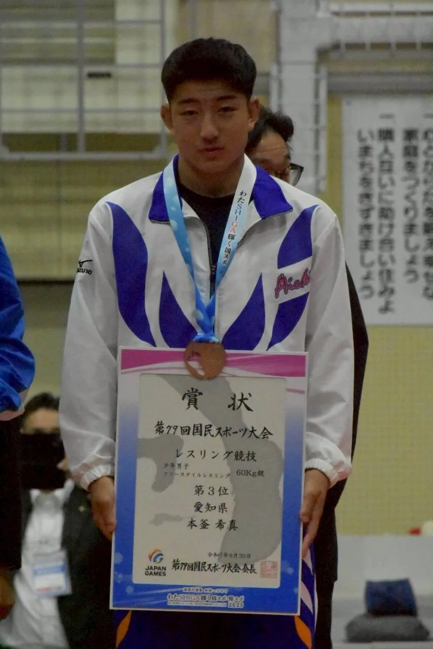 国民スポーツ大会に愛知県代表として3名が出場。60㎏級フリースタイル-本釜希真、65kg級グレコローマン-鎌倉晟匠、71㎏級フリースタイル-成瀨友喜の3名です。